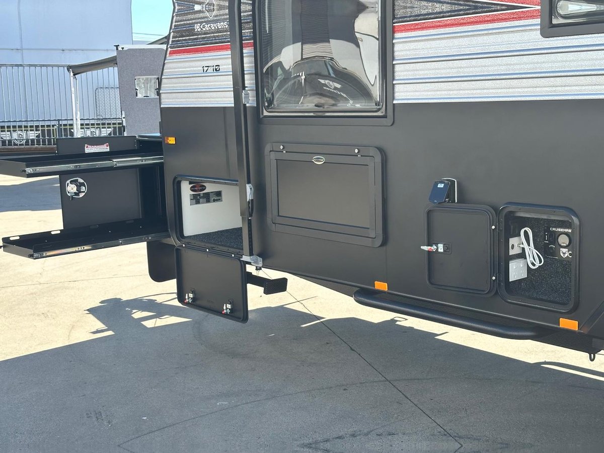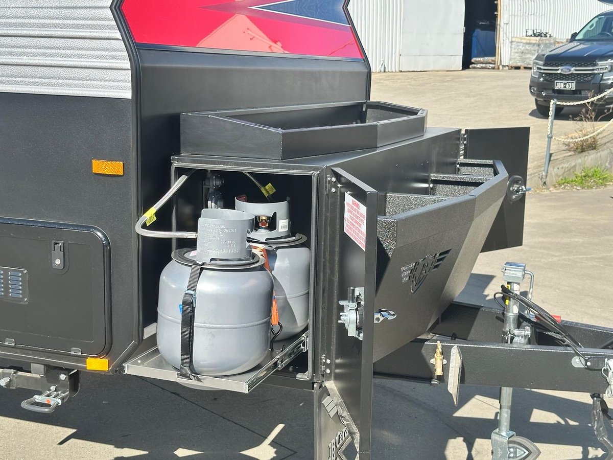- New 2025 Raptor Coated Toolbox with built in stone guard and wood box and Slide Out Drawers for your gas bottles and fridge/BBQ slide so you can organize and access your gear with ease.