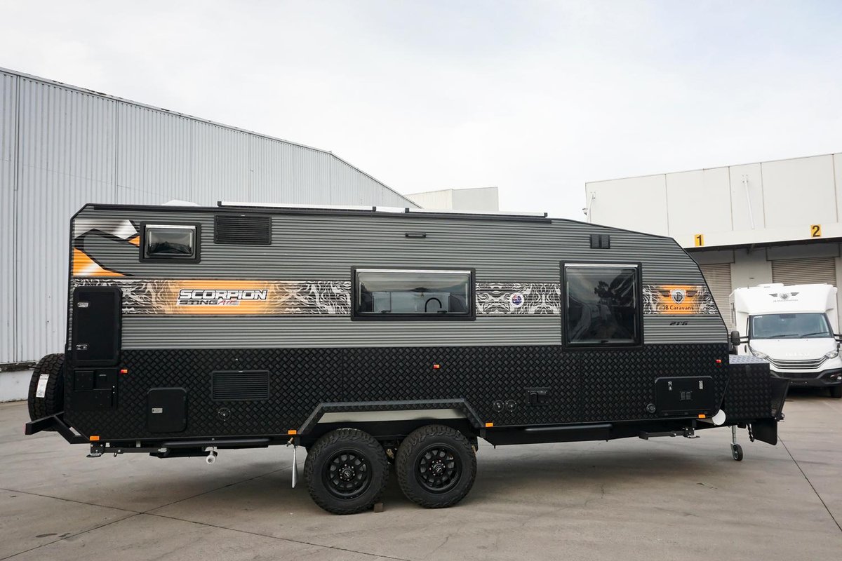 Introducing the Most Talked about Scorpion STING AIR 21’6 CLUB LOUNGE. Now with 5 Year Manufacturer’s Structural Warranty (ANY Tracks in Australia), 5 Year Chassis Structural Warranty, 3 Year Warranty on all the Plumbing Workmanship and Electrical Workmanship. With Heaps of Extras listed below, this is set up for Free Camping and off Road travels.