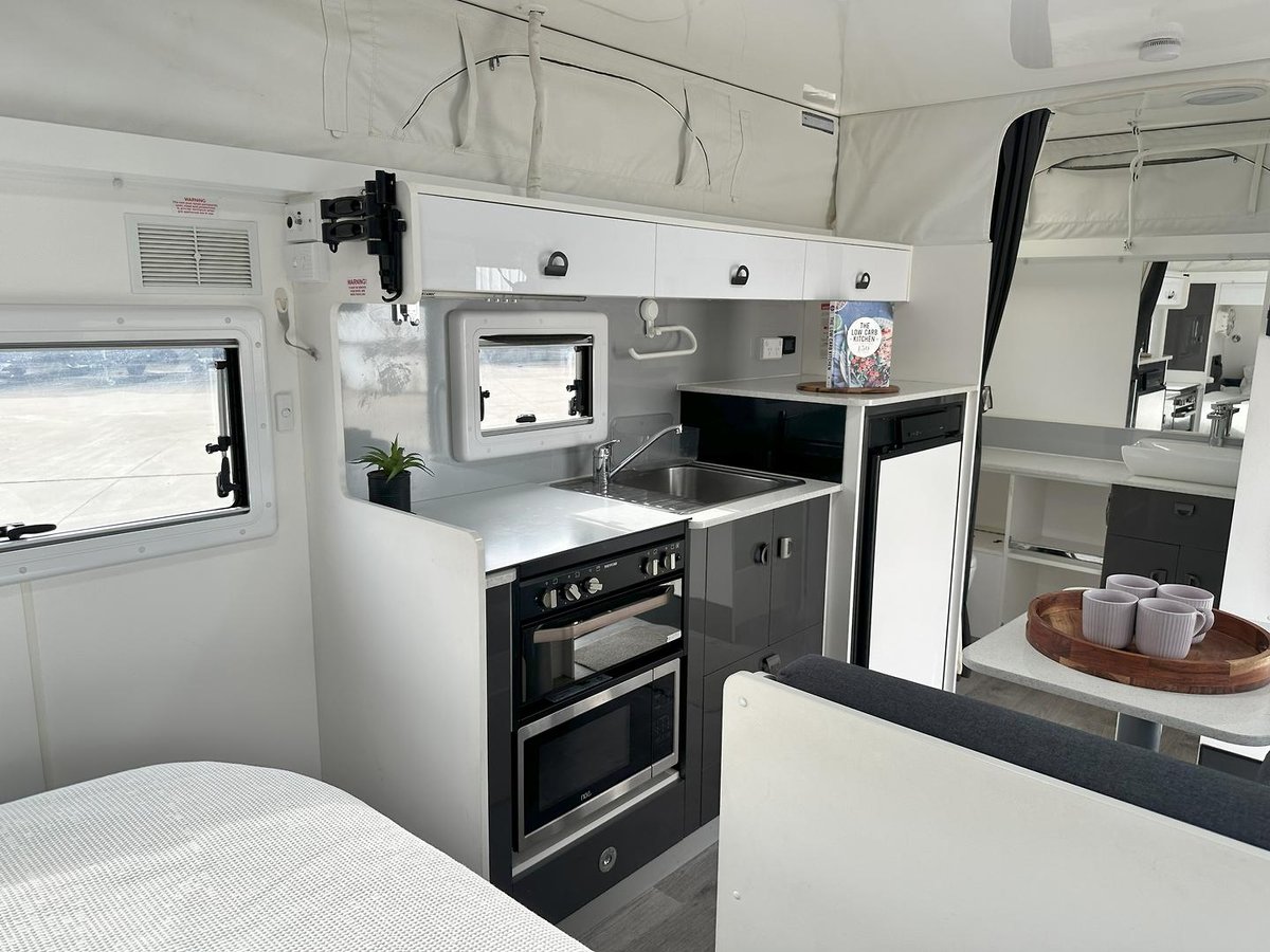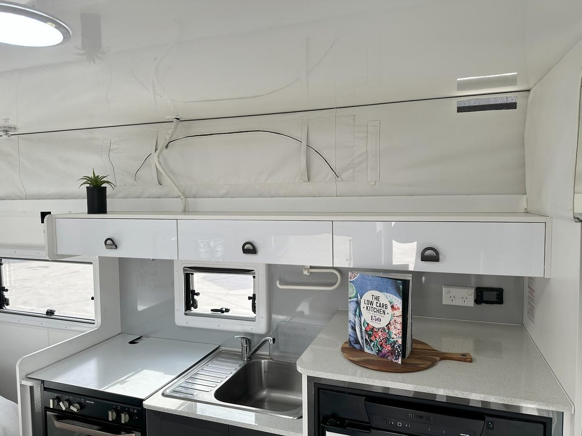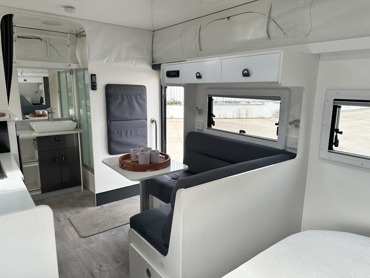 The L-shaped dinette, full ensuite and spacious kitchen gives the smallest compact caravan in the Road Owl Range an abundance of space. European windows, 2X 9kg gas bottle, 2X 110L water tank, sway control and 12V plug and plat electrical wiring is just the beginning of the vans opulence.